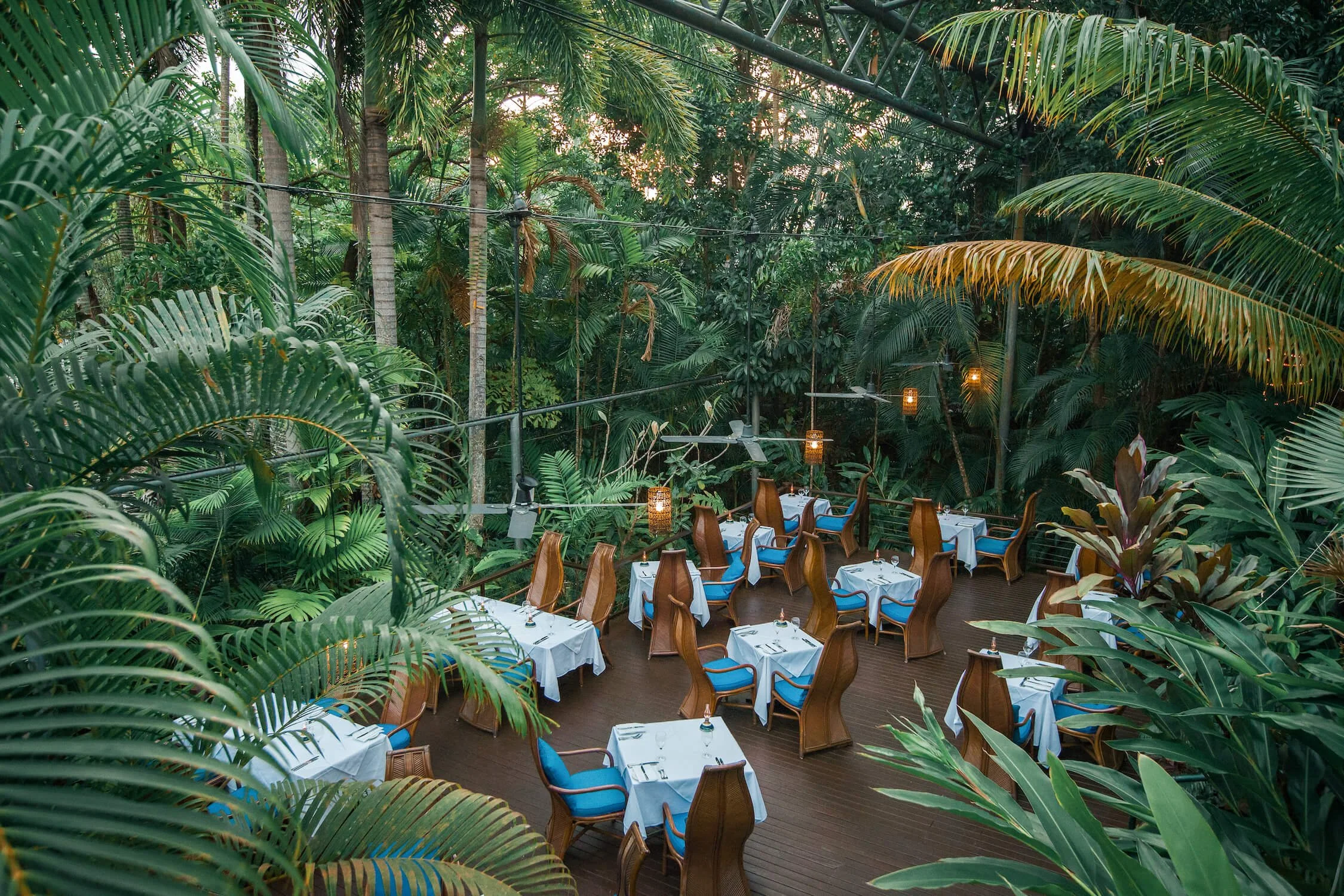 Iconic open‑air fine‑dining destination set beneath towering palm trees in a lush tropical garden. Established in the 1950s, it’s known for its elegant Modern Australian degustation menus showcasing local seafood and produce, an extensive wine list, and relaxed yet memorable atmosphere. The restaurant is entirely outdoors (with clever canopies for rain), making dining feel like a tropical experience under the stars.