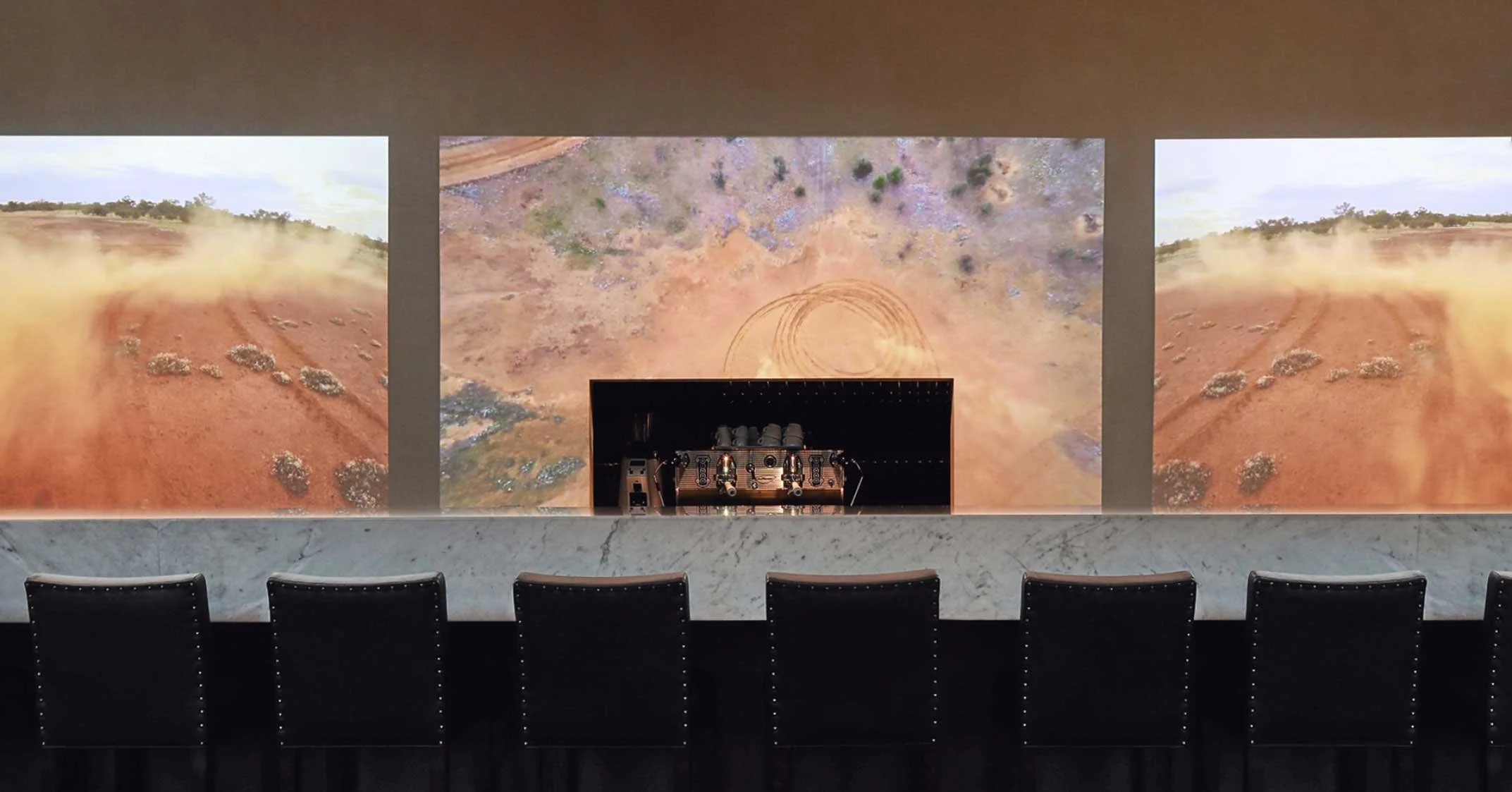 Housed on the ground floor of Eleven Eastern, a high-rise office building, Lucia offers contemporary European dining in a sophisticated space. The 80-seat restaurant nods Saint Lucia of Syracuse with custom large-scale works by Melbourne collage artist Simone Esterhuizen, who uses an earthy colour palette of burgundy, silver and amber.