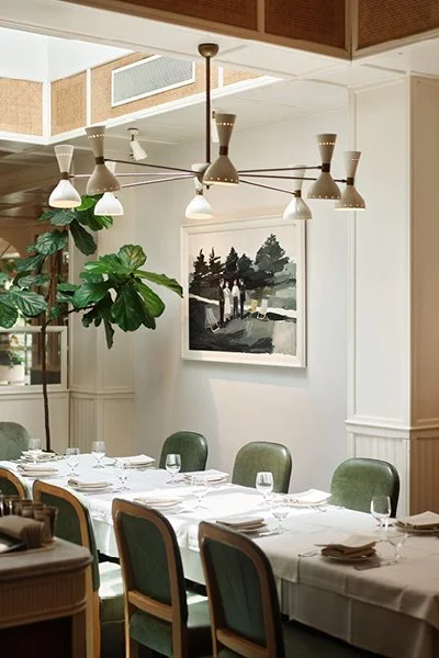 An intimate semi private space for 8-12 guests, featuring antique Murano glass chandeliers and artwork by Tony Clark, it reflects the classic European charm of the building.