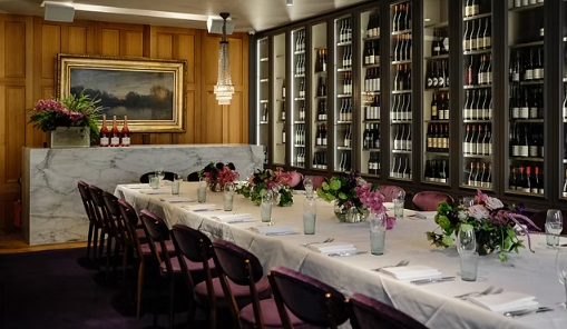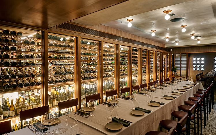 The striking feature piece of the upstairs level is their full wall-to-wine temperature-controlled wine cellar, holding Circl’s impressive collection of wines from around the world. Designed to seat 18-38 guests.